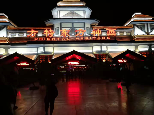 因為有一天的時間,我們準備把各種節目都看我。我們首先看的是《天河之戀》,做在可以升降平臺的上面,仿佛置身與其中,遙望牛郎和侄女鵲橋相會,觀看效果很好。
