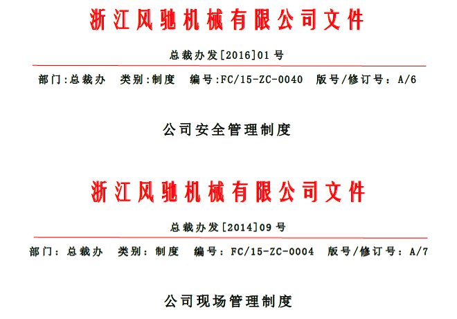 公司不斷完善制定《安全管理制度》、《現場管理制度》及《現場、安全管理檢查考核辦法》,成立安委會、現場檢查小組,現場、安全檢查每月不低于2次,每組檢查至少3人以上人員協同檢查,以求做到公平、公正,檢查細微。對不符合現場6S要求的,拍照記錄,作為整改依據按期完成整改,并在每季度中召開現場考核會議進行現場評審,評選優秀考核者。